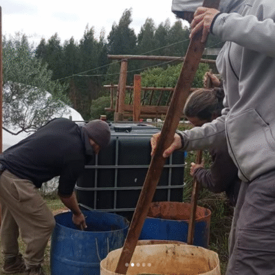 Los cursos de Permacultura Popular, orientados a la producción sustentable, comienzan en Primavera cuando, con tareas de mejora en el lugar del bosque, se prepara el terreno con control de malezas, mulch, ubicando y abonando pozos para futuros árboles con los insumos generados en invierno. Se invita a docentes locales, fomentando la colaboración y el abordaje interdisciplinario. Se convoca a vecinos, interesados, e iniciativas sustentables a intercambiar saberes y experiencias sobre producción sustentable y se realiza la plantación de especies pioneras en el sistema agroforestal, promoviendo la actuación en red. En las jornadas de aprendizaje de verano, se realiza el mantenimiento (poda, resiembra, desmalezamiento, abono) y la construcción de senderos, junto con la producción de más biofertilizantes, microorganismos. También se realiza la construcción de un vivero para asegurar la generación continua de árboles y plantas dentro del sistema, con espacio para almacenar semillas y preservar la diversidad genética de especies locales, generando resiliencia comunitaria.