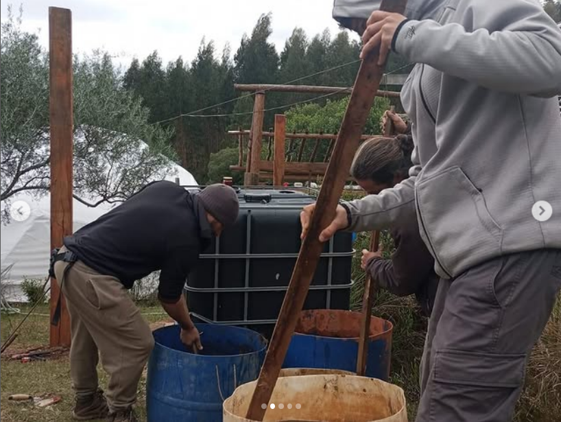 Los cursos de Permacultura Popular, orientados a la producción sustentable, comienzan en Primavera cuando, con tareas de mejora en el lugar del bosque, se prepara el terreno con control de malezas, mulch, ubicando y abonando pozos para futuros árboles con los insumos generados en invierno. Se invita a docentes locales, fomentando la colaboración y el abordaje interdisciplinario. Se convoca a vecinos, interesados, e iniciativas sustentables a intercambiar saberes y experiencias sobre producción sustentable y se realiza la plantación de especies pioneras en el sistema agroforestal, promoviendo la actuación en red. En las jornadas de aprendizaje de verano, se realiza el mantenimiento (poda, resiembra, desmalezamiento, abono) y la construcción de senderos, junto con la producción de más biofertilizantes, microorganismos. También se realiza la construcción de un vivero para asegurar la generación continua de árboles y plantas dentro del sistema, con espacio para almacenar semillas y preservar la diversidad genética de especies locales, generando resiliencia comunitaria.